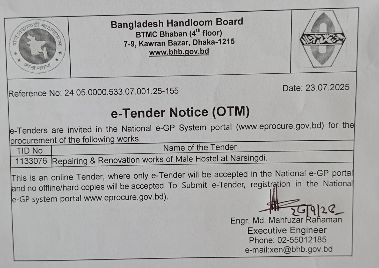| ৭ | বাতাঁশিপ্রই, নরসিংদী কেন্দ্রের পুরুষ হোস্টেলের মেরামত সংক্রান্ত। | ২৩-০৭-২০২৫ | দেখুন | |||